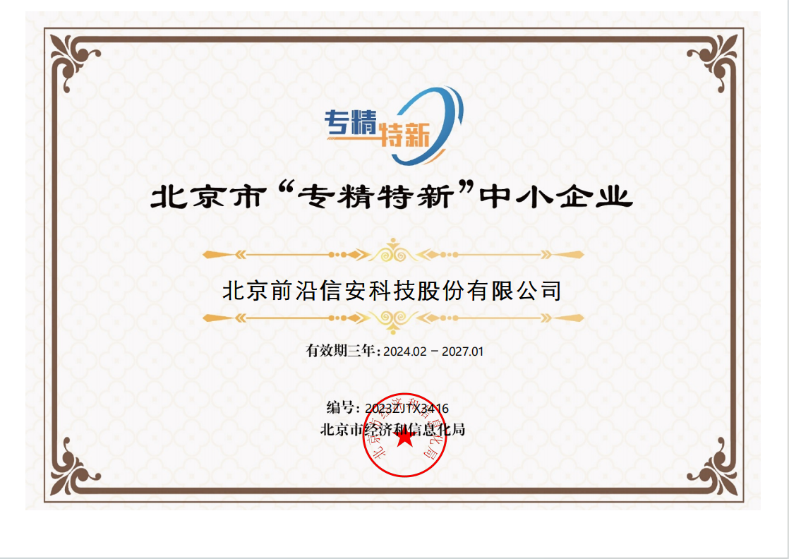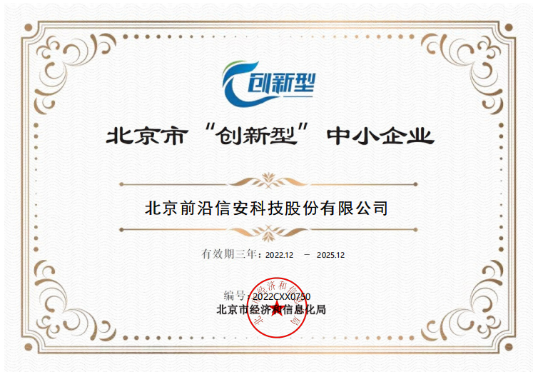 2023年4月,按照工业和信息化部《优质中小企业梯度培育管理暂行办法》(工信部企业〔2022〕63号)、《北京市优质中小企业梯度管理实施细则》要求,乐鱼手机站入口取得了2023年北京市“创新型”中小企业认定证书。