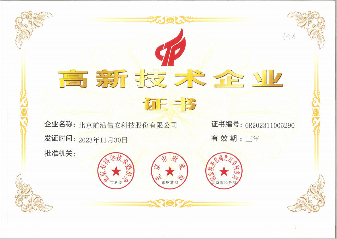 高新技术企业证书